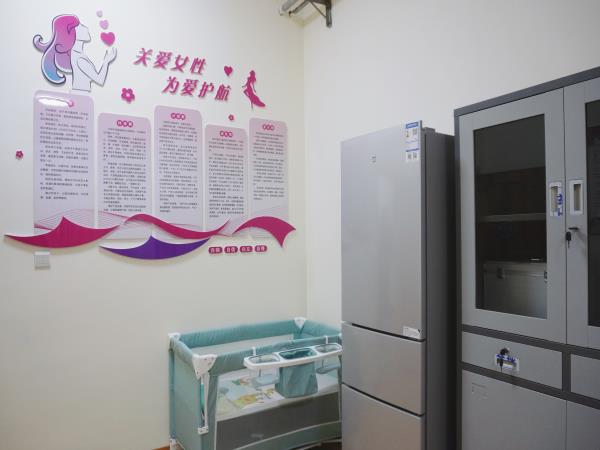 走進女職工關愛室,整體裝飾風格簡潔明亮、溫馨淡雅,室內不僅配備有嬰兒床、冰箱、空調、沙發(fā)桌椅、儲物柜等設施,還結合女職工需求,貼心配備了保健用品、針線盒、健康知識讀物等物品。為女職工“五期”關愛提供便利的同時,也為女職工溝通交流、舒緩壓力等提供了獨立的空間。