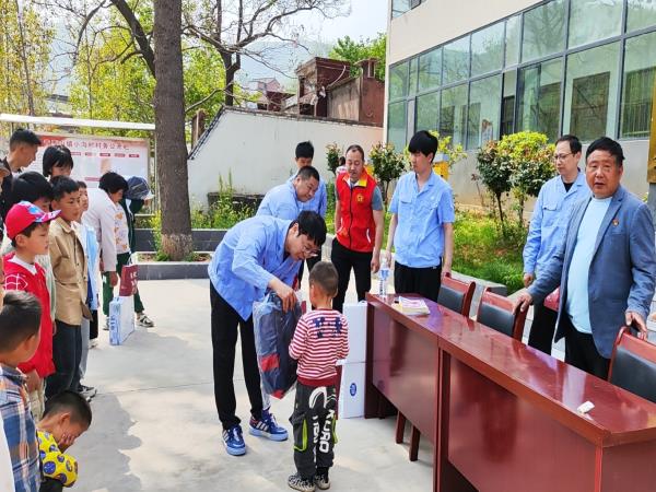 班組成員為孩子們發(fā)放學(xué)習(xí)、生活用品